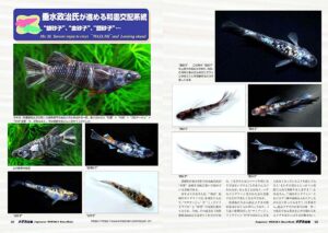 ここ数年のメダカ関連書籍で絶対に掲載する必要のある注目系統が“和墨”で、作出者である有岡さんの系統を今号も掲載させていただきました。