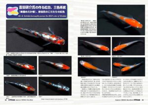紅白、三色系統は改良メダカの重要な品種で、新潟県燕市在住の『東屋めだか部』、吉田研介氏の作られる系統や、広島県呉市で“神田三色”を作られる神田友樹さんの素晴らしい系統も初掲載!